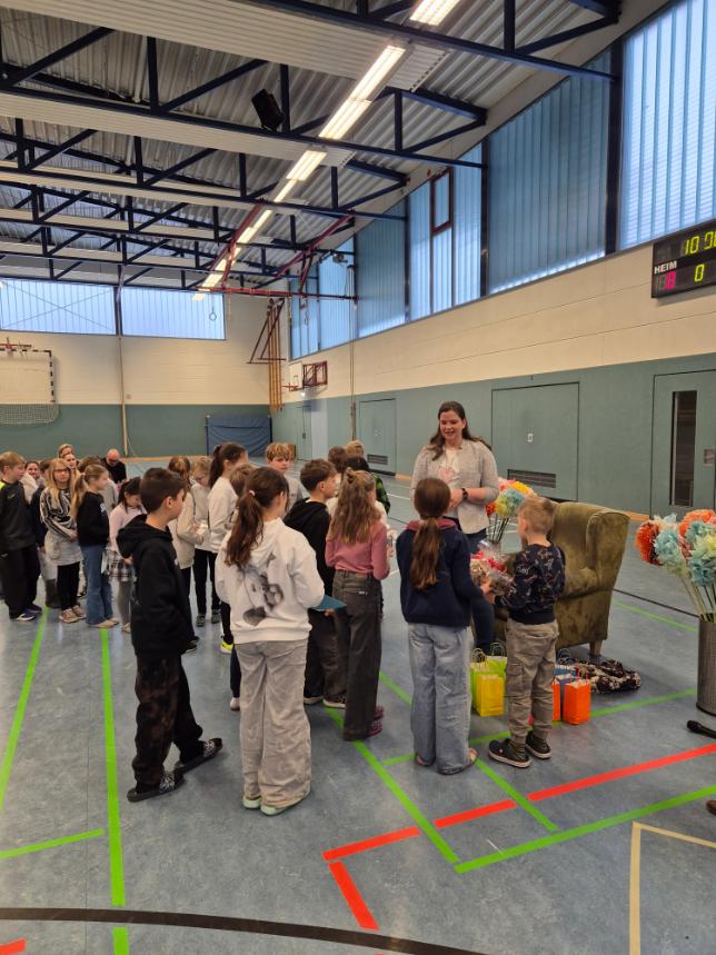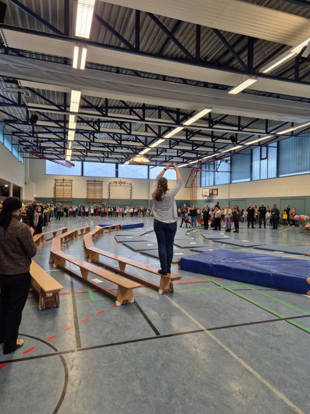 In einer liebevoll geplanten und fulminant ausgeführten Feier verabschiedeten die Kinder und Erwachsenen der Grundschule Alt-Wolfsburg am 30. Januar 2026 ihre nun ehemalige Schulleiterin, Julia Feistner. Der tränenreiche Abschied nach fünf Jahren des Miteinanders war schwer, das wurde in vielen Programmpunkten klar. Von den herzlichen Worten von Herrn Matthias Stegmaier, der nun in die großen Schulleitungsfußstapfen tritt, über den Auftritt der Tanz-AG und dem Interview der Klasse 4c bis hin zum bewegenden Abschiedslied, bei dem sowohl das Kollegium als auch die Kinder aus vollem Herzen „Danke!“ sagten – Frau Feistner war anzusehen, wie schwer ihr der Abschied fiel. Auch die ein oder andere Kinderträne wurde verdrückt.